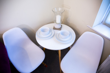 The modern kitchen is fully equipped with everything you need to prepare your favourite meals, whether it's a quick breakfast or a more elaborate dinner. You'll find a fridge, microwave, oven, and all the necessary cooking essentials, along with a dining area to enjoy your meals in a relaxed setting.